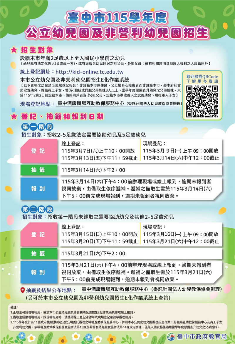 🔶招生托育相關事宜如有疑問,請洽該部教保中心黃主任(04-23500160,E-mail:[email protected])或中心FB粉絲專頁留言。