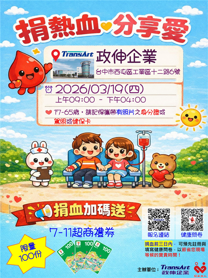 ★ 捐血加碼送 7-11超商禮券 (限量100份)