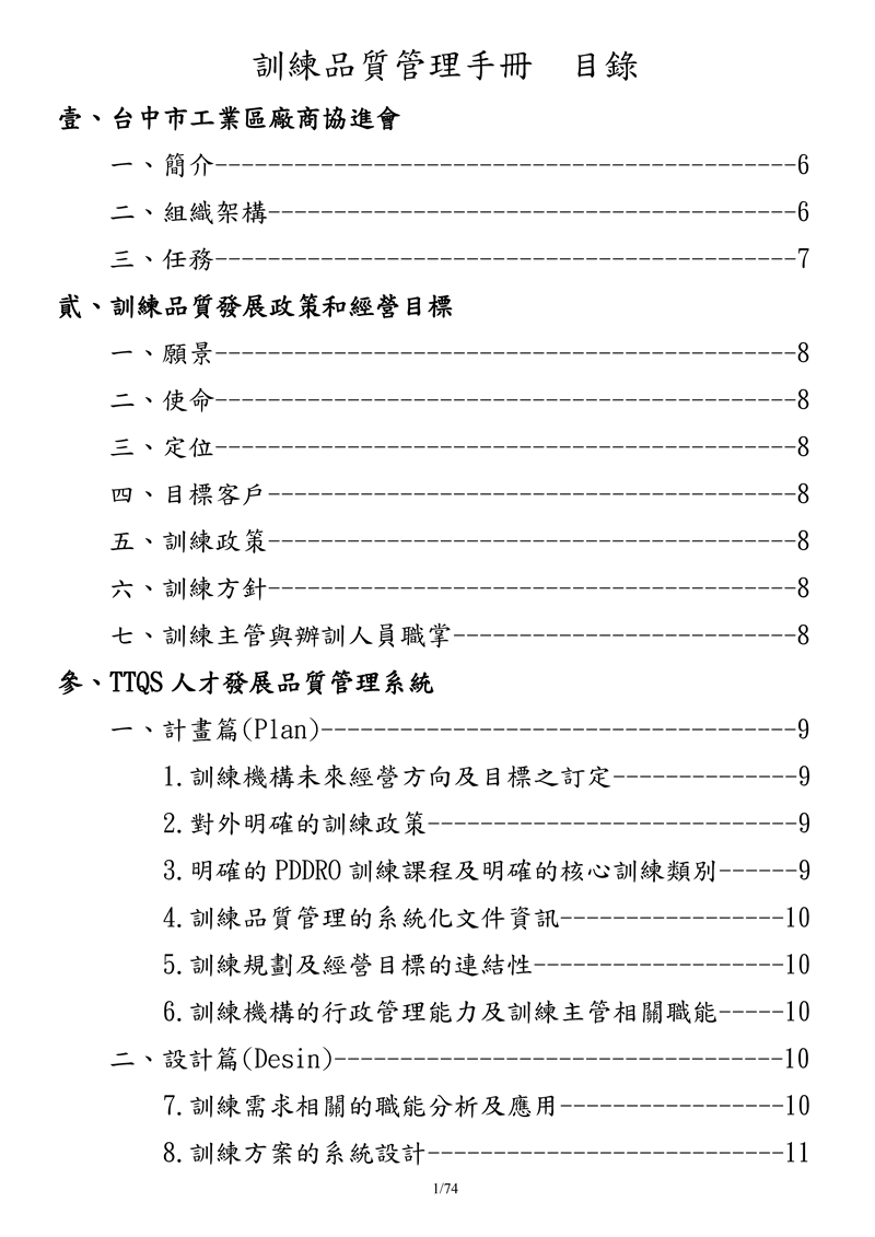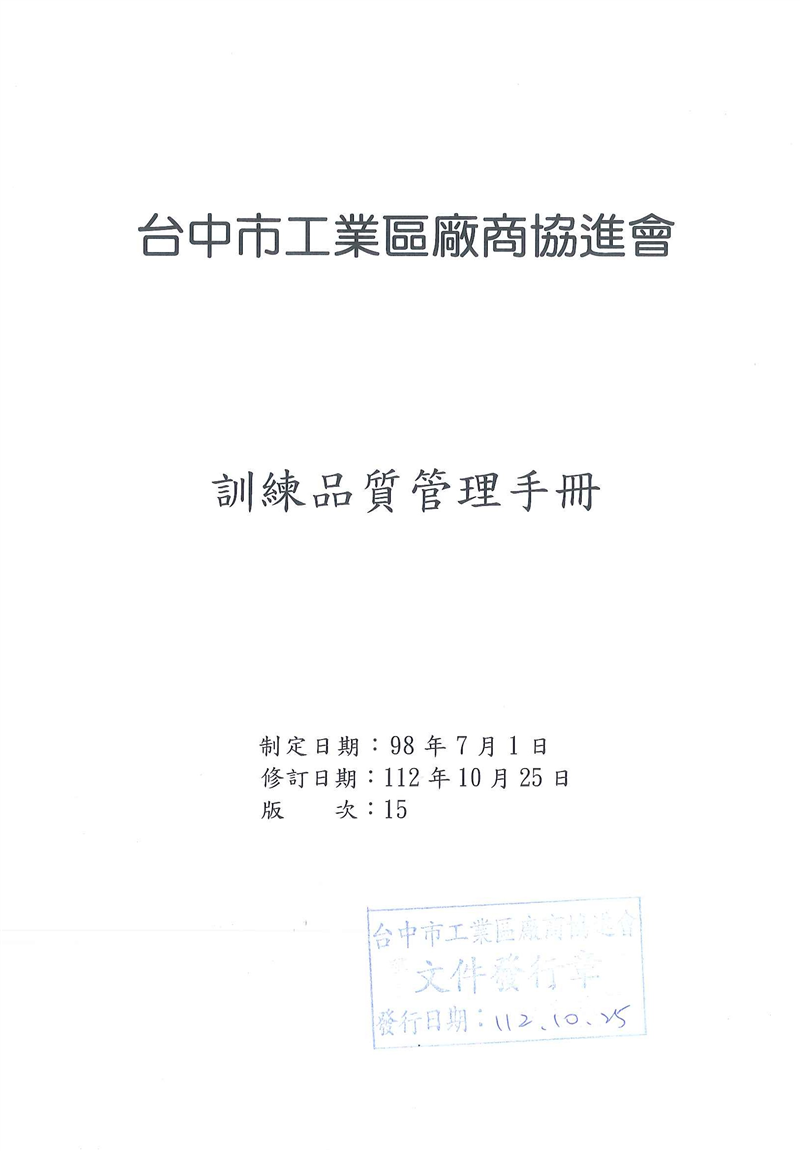台中市工業區廠商協進會訓練品質管理手冊